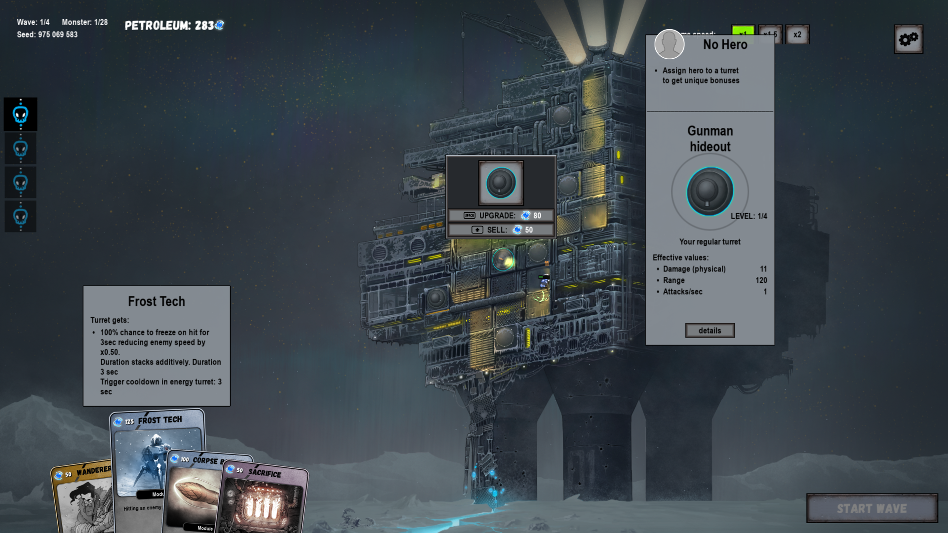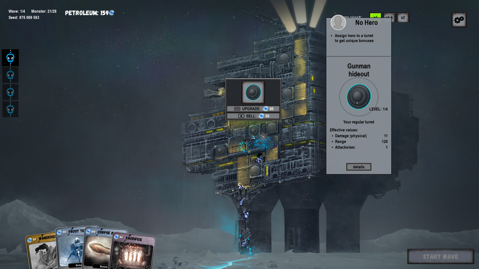 - Reposition details on zoom. Once we've introduced the zoom and camera controls feature, it sometimes happens, that the details panel for turret purchase and upgrade UI would overlap with the other UI elements. I agree, that this looks a bit off, so when this flag is true, the game would dynamically reposition the details panel, so that it won't overlap. I don't really know my own attitude to this feature, since I would like the details panel be always on the same position of the screen: I know what to expect. So done this behind a feature flag.